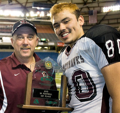 My nephew posing with coach Jim Sandusky, a former BC Lions player |