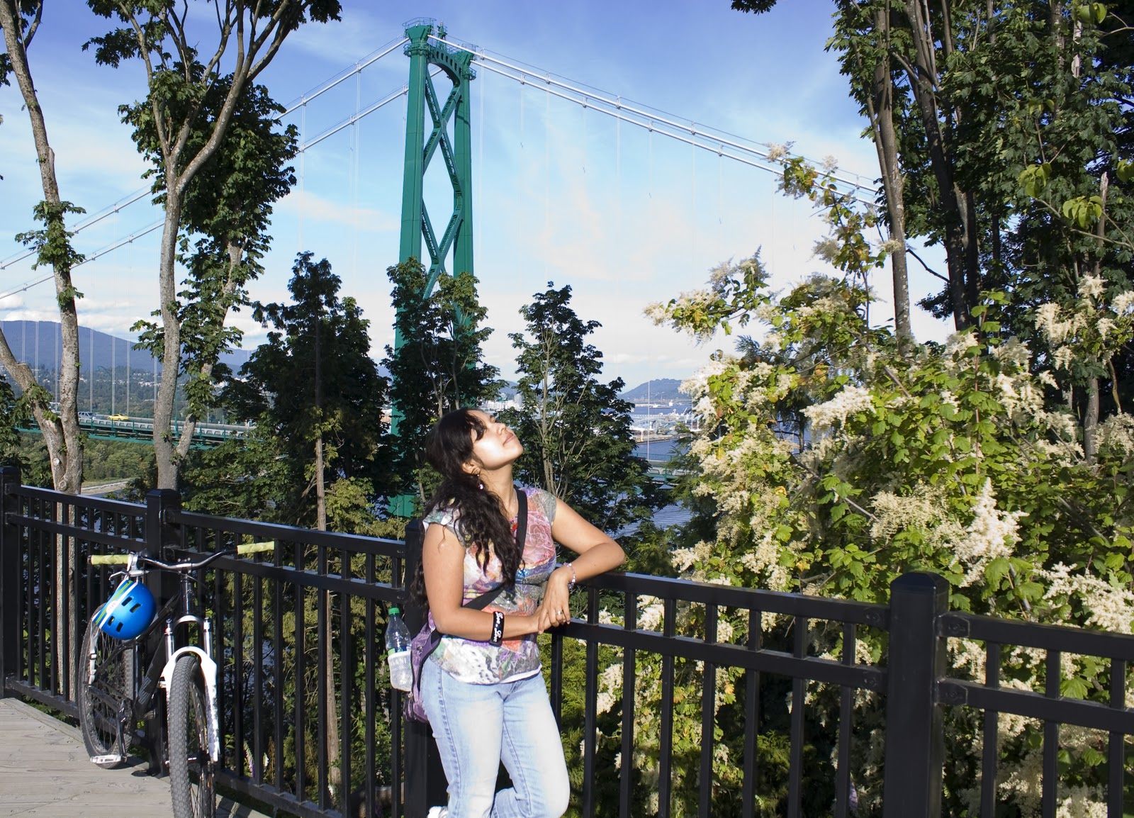 At Stanley Park, Vancouver. The Lions Gate Bridge is in the background.